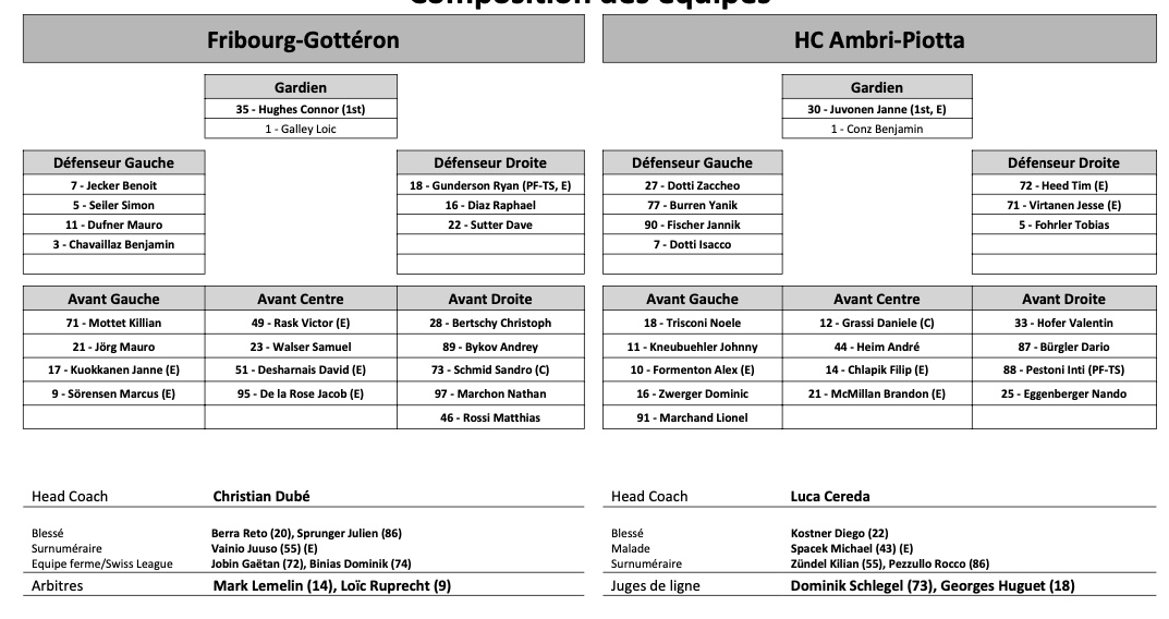 Formation des équipes et joueurs indisponibles pour le match Fribourg vs Ambri 06/01/2023 Follow SwissHabs Derniers articles Il y a 3 heures Régis Fuchs sera honoré cette semaine Il y a 4 heures Prolongations de contrats à l'EHC Coire Il y a 5 heures Diego Kostner absent quelques semaines Il y a 5 heures Pontus Åberg passera les prochains matchs à Kloten Il y a 7 heures Deux autres renforts pour le HC Viège