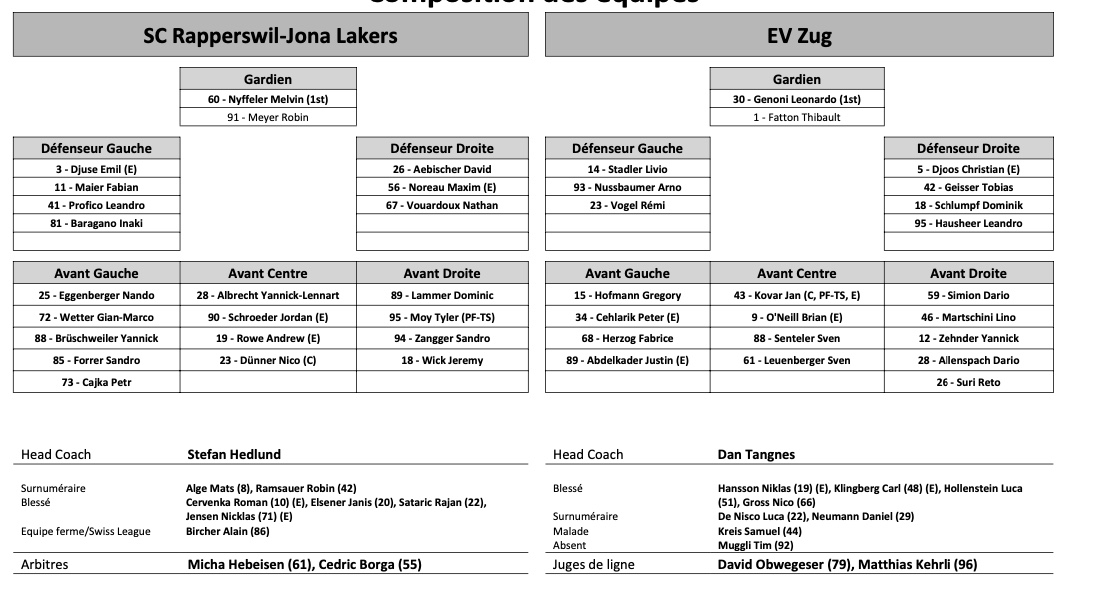 Formation des équipes et joueurs indisponibles pour le match Rapperswil vs Zoug 26/11/2022 Follow SwissHabs Derniers articles Il y a 6 jours Marie-Philip Poulin signe un record olympique Il y a 6 jours Un match de suspension et une amende contre Rico Gredig Il y a 6 jours Suspension provisionnelle et ouverture d'une procédure contre Justin Studer Il y a 6 jours La fédération française exclut Pierre Crinon de l'équipe Il y a 6 jours Formation des équipes pour le match Suisse vs Canada