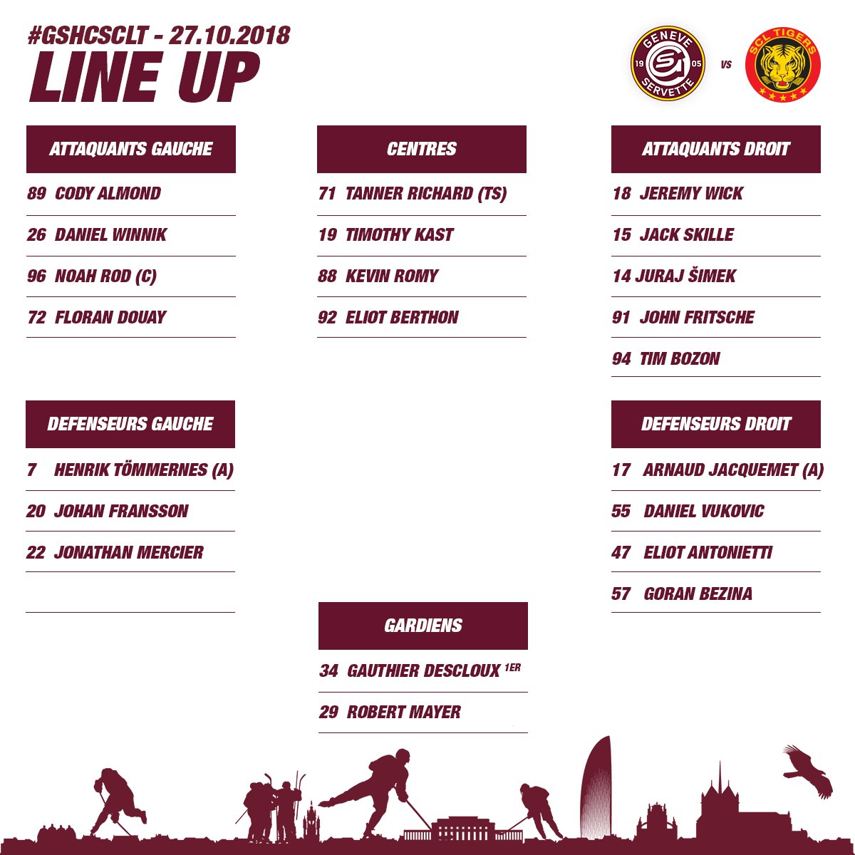Formation des équipes pour les matchs du jour en National League 27/10/2018 Follow SwissHabs Derniers articles Il y a 6 jours Marie-Philip Poulin signe un record olympique Il y a 6 jours Un match de suspension et une amende contre Rico Gredig Il y a 6 jours Suspension provisionnelle et ouverture d'une procédure contre Justin Studer Il y a 6 jours La fédération française exclut Pierre Crinon de l'équipe Il y a 6 jours Formation des équipes pour le match Suisse vs Canada